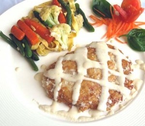 Se incalzeste cuptorul la 200 grade. Intr-o tigaie se topeste untul, la temperatura medie. Se amesteca ceapa, usturoiul, mustarul si o lingurita de paprika cu ansovele.Se coace pana cand ansovele devin un fel de pasta. In paralel, se aseaza puiul intr-o tava si se baga la cuptor dupa ce a fost uns cu mixtura de ansove preparata mai inainte.Se acopera cu folie si se coace 20 de minute. Se inlatura folia, se stropeste cu zema rezultata si se coace inca 25 de minute pana ce carnea devine frageda. Se scoate puiul pe un platou si se tine la cald. Se separa 2 linguri de grasime din tava si intr-o cratita se amesteca impreuna cu apa, crema de branza si jumatate de lingurita de paprika.Se fierbe la temperature medie, pana rezulta un sos moale care se va adauga peste carnea de pui. Provenind din provincia cu acelasi nume din Ungaria, Liptauer contine aproximativ 45% grasime, si se face din lapte de oaie. Aceasta branza moale, proaspata, are un gust moderat care se accentueaza de obicei cu ierburi aromatice, ceapa, usturoi si paprika (ceea ce o face sa se inroseasca). Este o branza delicioasa pentru gustari, care, in functie de aditivii folositi, se poate potrivi cu orice bautura, de la bere la vin.