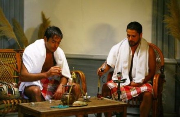 Radu Valcan, protagonist in telenovela "Iubire si Onoare" a filmat cateva secvente intr-un hammam turcesc la 40 de grade, impreuna cu Augustin Viziru si Costel Constantin.
