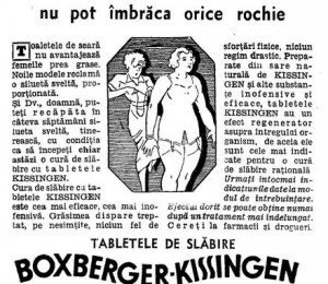 Pentru a-si atinge obiectivul, doamnele de la acea vreme erau indemnate sa cumpere aceste tablete de slanire care erau preparate din sare naturala de Kissingen si din "alte substante inofenzive". Sursa foto: Via București.