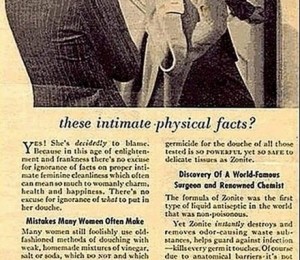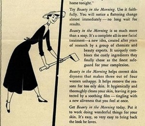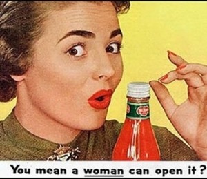 Anunturile publicitare prezinta femeile drept slabe si fara de opinii, incapabile sa inteleaga concepte de baza. In opinia celor care au facut acele reclame, femeia a fost construita pentru a curata prin casa, a gati si pentru a-i sluji sotului.
