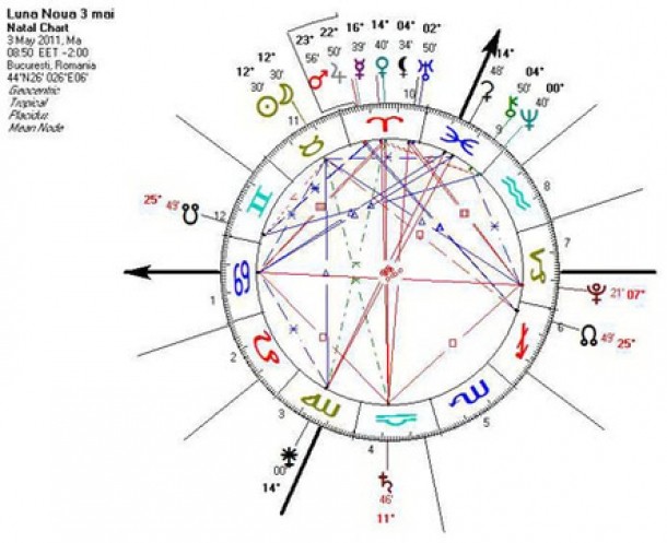 Luna Noua are loc la 08.50, in semnul Taur, la 12 gr 30, in inconjunctie cu Saturn (11 gr 46 Balanta) si in sextil cu Ceres (14 gr 48 Pesti). Se spune ca sextilul este un aspect venusian, asa ca aici poate reprezenta un soi de polenizare primavarateca, adica ne face sa ne simtim mai sexi, suntem mai senzuali, mai sanatosi, dar mai ales cei care isi doresc copii, fertili. Ceres, desigur prin natura sa saturniana poate aduce durere, tristete, pierderi sau separari, dar fiind vorba despre un sextil acesta va actiona la nivel colectiv prin dorinta fiecaruia de a fi mai bun, mai generos. Normal ca nu toti o vor percepe asa pe Ceres, dar cei care o simt in acest, fel vor realiza cat este de important pentru ei sentimentul autoaprecierii.