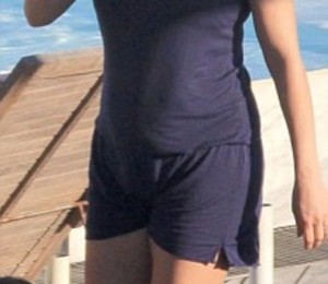 In imaginile facute publice de publicatia US Weekly burtica este deja vizibila. Actrita, care va implini pe 22 martie 36 de ani, apare in poze intr-un jumpsuit scurt in timp ce se bucura de o scurta vacanta in Rio impreuna cu sotul ei si cei doi copii.