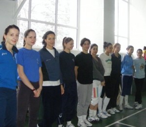 23 februarie 2011, Sala Floreasca, Bucuresti - Ana Maria Branza, Anca Maroiu, Simona Alexandru si Loredana Iordachioiu se echipeaza pentru a incepe antrenamentul zilnic sub ochii lui Dan Podeanu si Milan Cornel.