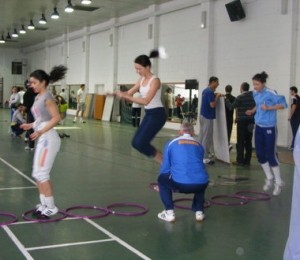 Primul lucru, incalzirea. Evindent, ca in orice echipa, micile tachinari fac timpul sa treaca mai repede. Asa ca printre turele de alergare usoara, exercitiile pentru brate si cateva minunte de stretching, sunt trecute in revista si ultimele activitati de pe Facebook, eventuale probleme sentimentale sau noile cuceriri ale fetelor pe care Milan Cornel, unul dintre antrenorii lotului national, are grija sa le comenteze cu umor.