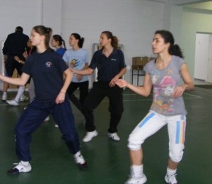 Urmeaza "lectia". Fetele isi pun costumul si se pregatesc de duel. Chiar si atunci cand isi trag sufletul isi calculeaza urmatoarea miscare. Vad cu ochii mintii adversarul, ii anticipeaza miscarile. Poti sa iti dai seama ca ceva nu este in regula dupa gesturile usor nervoase cu care isi ridica masca pentru a-si sterge sudoarea de pe frunte. In schimb, victoria, chiar si in sala de antrenament, este marcata asa cum trebuie. Un strigat puternic, pumnii stransi intr-un gest care arata determinarea, concentrare maxima in fiecare secunda. Fetele astea nu se joaca! O lovitura aplicata gresit, un moment in care, din neatentie, sau din prea mult zel, isi lovesc partenerul de antrenament sunt insotite de scuzele de rigoare.