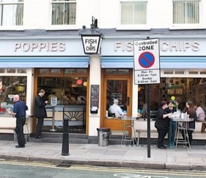 Poppies Fish & Chips London - votat drept cel mai bun restaurant al renumitei francize, acesta iti pune la dispozitie preparate delicioase, pe baza de peste, servite intr-o atmosfera retro si de catre angajati zambitori si prietenosi.