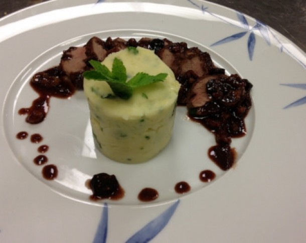 Laura Cosoi a publicat reteta cu care s-a prezentat prima oara in fata juriului de la emisiunea MasterChef: piept de rata cu stafide si curmale, servit cu piure de cartofi cu patrunjel, usturoi si menta.