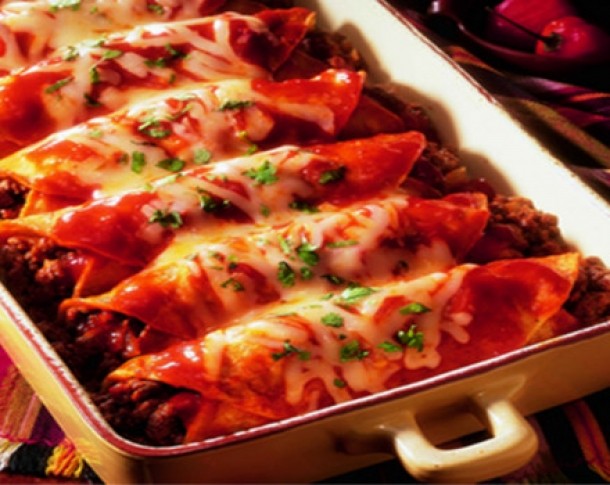Ai nevoie de umplutura din carne tocata de vita, sos iute, tortilla de porumb si niste branza.
