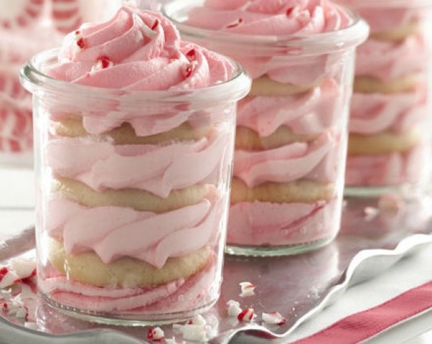 Amesteca frisca cu un praf de colorant alimentar rosu pentru a o face roz. Pune apoi frisca intr-un dispozitiv pentru ornat prajituri si, cu ajutorul acestuia, acopera fundul paharelor cu un strat de frisca. Peste acesta pune un fursec, inca un strat de frisca si tot asa pana cand paharul este plin. Peste ultimul strat de frisca pune cateva bombonele si gata, ai obtinut cel mai cool desert preparat pe fuga!