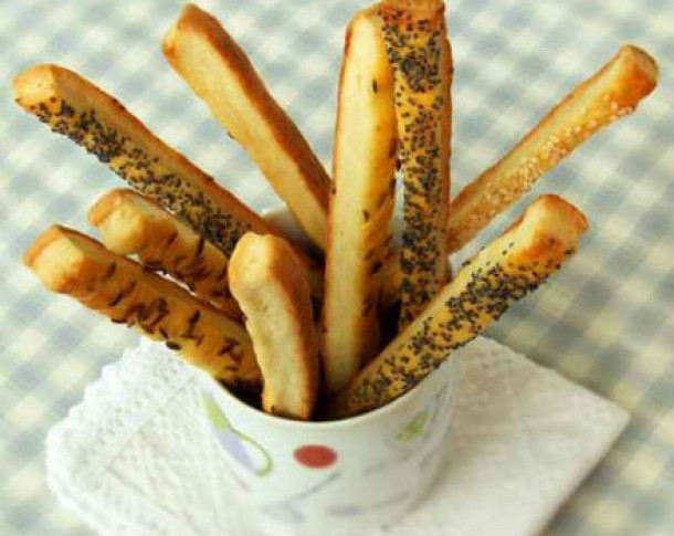 Freaca bine untul si adauga uleiul. Rade cascavalul si pune-l in compozitie o data cu laptele, un varf de cutit de sare si faina cat cuprinde. Aluatul pe care il obtii trebuie sa fie moale. Intinde o foaie groasa de un deget, taie din ea batoane, unge-le cu albus de ou si presara chimen. Baga-le la cuptor pana se umfla si se rumenesc. Pot fi servite reci sau calde, cu bere sau simple.