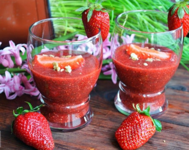 Spala capsunile, rupe-le coditele si le pune-le in blender. Adauga mierea, mixeaza pana obtii o pasta fina. Dupa gust, poti adauga miere, daca capsunile nu sunt foarte dulci e posibil sa trebuiasca mai multa.