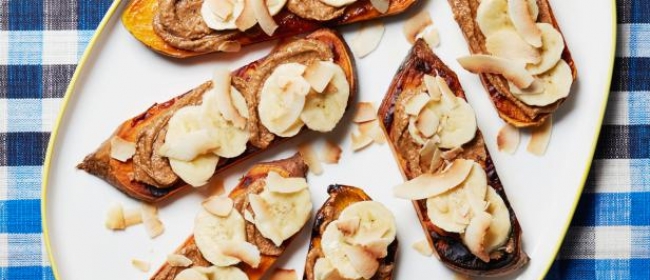 Sendvișuri fără pâine, cu cartofi dulci și unt de arahide