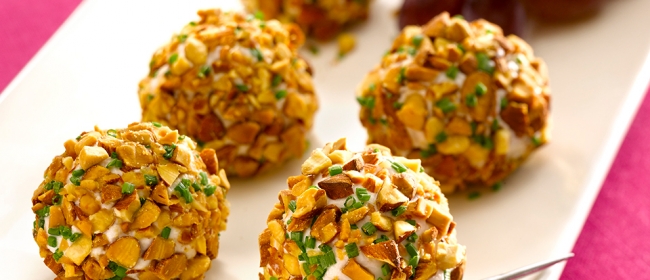 Trufe din brânză cu struguri, în crustă de migdale