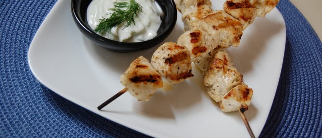 Surprinde-i pe cei dragi cu frigărui greceşti, servite alături de un sos tzatziki răcoritor!