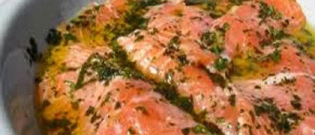 Somonul se taie felii de 1 cm grosime si se intinde pe un platou. Pestele oceanic se toaca...