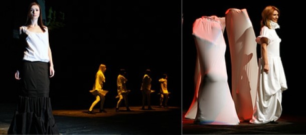Sursa de inspiratie a reprezentat-o portul national din zona natala, Miercurea Ciuc. Create dupa stilul vestimentar al designerului, tinutele au fost realizate din materiale naturale: bumbac, in si matase, in culori neutre ca alb, negru si gri, pentru ca “am avut o aversiune fata de culori dintotdeauna, in ceea ce privesc hainele,” mi-a declarat Eniko. Tinuta din finalul colectiei a fost prezentata de Adela Popescu, o buna prietena de-a sa, cu care lucreaza de mult timp, ea purtand chiar si prima rochie creata de designerul Eniko.Anca Ciataras - inspirata de mare