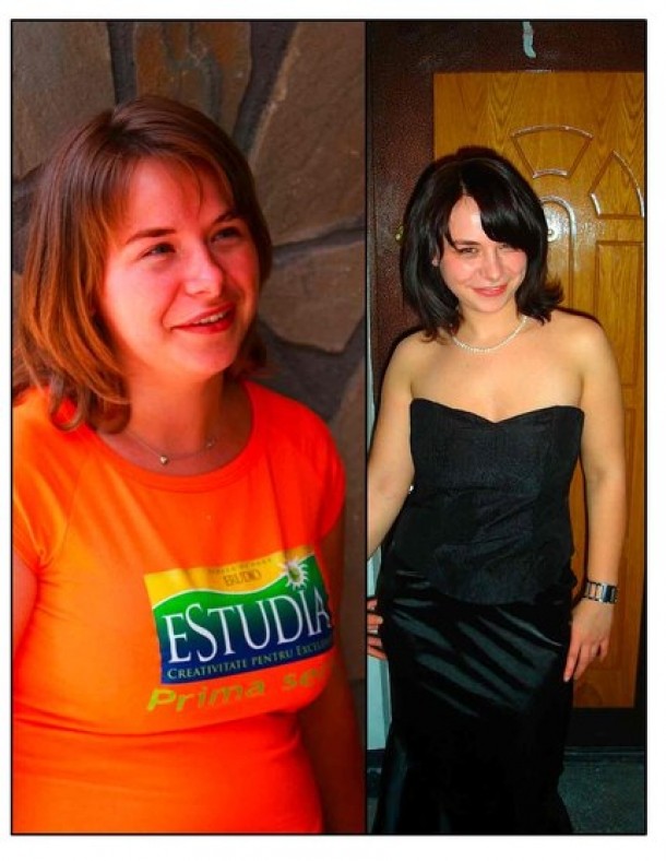 Prima poza este facuta in august si este reprezentativa pentru greutatea ei de dinainte de a incepe dieta.