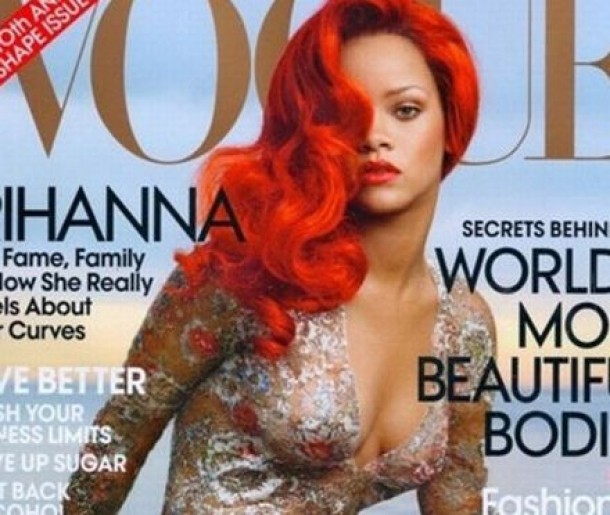 Cel mai nou pictorial al interpretei a fost realizat pentru revista Vogue, unde Rihanna apare chiar pe coperta cu parul de o nuanta rosu aprins.