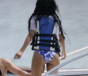 Imbracata intr-un costum de baie din doua piese, Rihanna le-a aratat fotografilor ce are mai de pret: un posterior sexy.