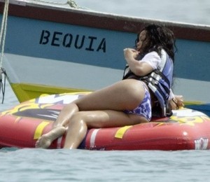 Artsita in varsta de 25 de ani s-a aratat intresata sa incerce cateva sporturi nautice si a fost ocazia perfecta pentru a-si expune conditia fizica de invidiat. Rihanna a slabit foarte mult in ultimul timp si chiar daca ea se declara nemultumita ca si-a pierdut formele generoase, silueta ei merita in continuare toata admiratia.