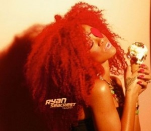 Rihanna apare costumata asemenea unui iepuras Playboy, cu o tinuta alba, dar si cu parul rosu in timp ce savureaza o inghetata.