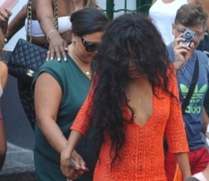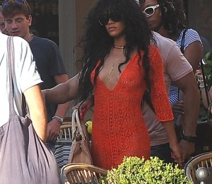 Outfitul pe care aceasta l-a purtat a ajutat-o cu siguranta sa obtina ceea ce dorea, cantareata in varsta de 25 de ani purtand o tinuta potrivita mai degraba pentru o plimbare pe plaja. Rihanna a iesit imbracata intr-o rochie crosetata de culoare portocalie care in plus avea si un decolteu generos, dar la care bineinteles ca artista nu a binevoit sa poarte si un sutien.