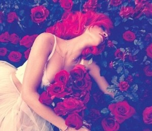 In sedinta foto, Rihanna a inlocuit chilotii cu un trandafir, care sa-i acopere zona intima.
