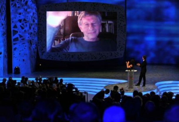 Roman Polanski nu s-a prezentat la ceremonie, de teama sa nu fie arestat, insa a tinut sa multumeasca sustinatorilor prin intermendiul Skype.