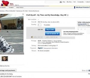 Mesajul postat pe eBay de Alex Balasa este urmatorul: "Ma vand pe mine, timpul si cunostintele mele. Cumpara-ma!"