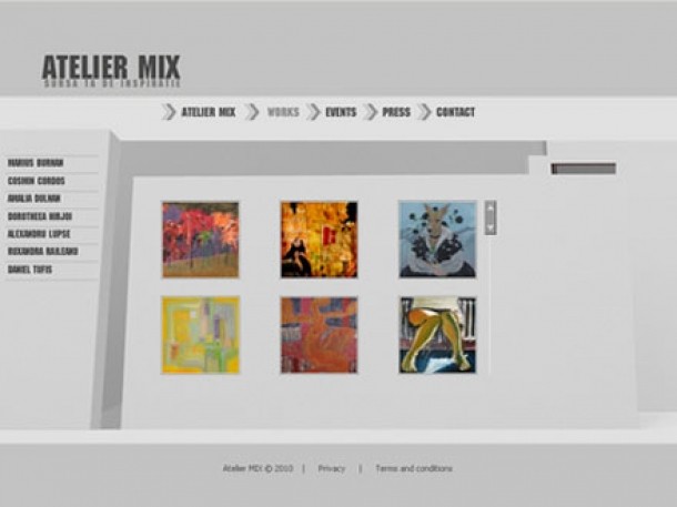 Site-ul AtelierMiX.ro este o galerie online de pictura, dedicata exclusiv artistilor romani cu viziune proprie, mod de exprimare autentic si capabili de a crea arta cu potential de patrimoniu.