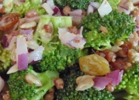1 cană de maioneză light, 1/2 cană de smântână, 1 căţel de usturoi mărunţit, 2 linguri de zeamă de lămâie, 1/2 kilogram de paste fierte, o mână de lăptuci, 1 1/2 cană de roşii cherry, 4 cepe verzi tocate mărunt, 1/2 cană de parmezan ras, 1/2 linguriţă de piper negru măcinat, 2 piepturi de pui făcute pe grătar şi mărunţite, 2 căni de crutoane