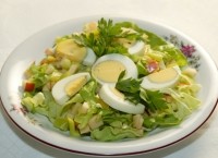 3. Se amestecă muștarul cu oțetul, sosul Worcestershire, usturoiul zdrobit, sarea și piperul, după care se pune și un pic de ulei de măsline, pentru a forma un dressing și ceea ce rezultă se pune în formă de spirală desupra fiecărei farfurii, care se mănâncă imediat.
