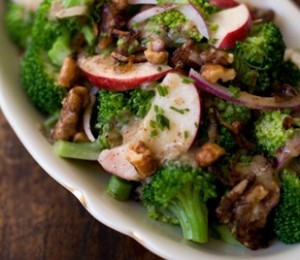 Intr-un castron se amesteca maioneza, otetul si indulcitorul. Se adauga broccoli. Se adauga branza, sunca, alunele si cepa.Se amesteca bine, se acopera si se lasa la rece.