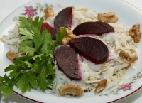 Poţi, de asemenea, să foloseşti şi frunze de sfeclă pentru a da un aspect deosebit salatei. Opăreşte-le în apă cu sare şi adaugă-le în salată.