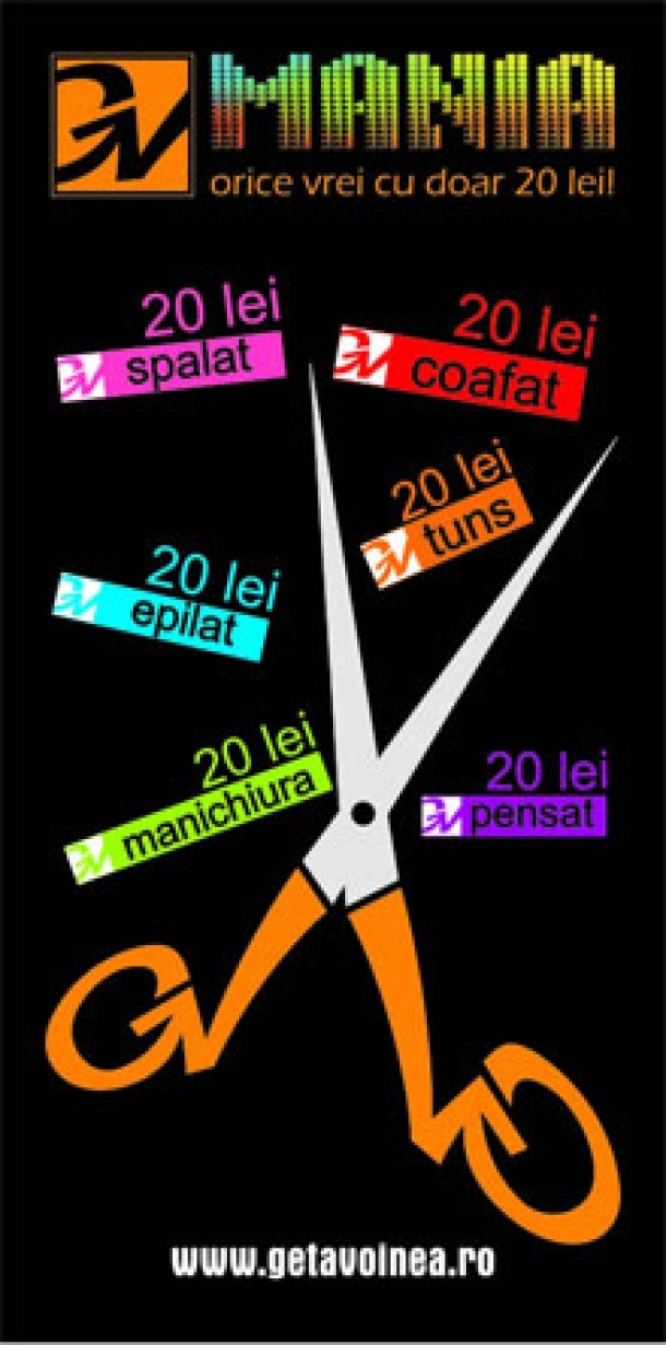 Cu aceasta ocazie, Geta Voinea Hair si GV Hair&Beauty Salon Baneasa dau startul la Campania "GV Mania- orice vrei cu doar 20 lei", care se desfasoara in perioada 1 februarie -31 martie 2010, de luni pana miercuri , in programul de functionare al salonului. Astfel, toate femeile se pot bucura de frumusete la preturi incredibile, serviciile fiind realizate de echipa de hairstilisti a salonului din Baneasa, dar si de colegii din celelalte locatii GV. Oferta "orice vrei cu doar 20 lei" este valabila pentru serviciile: spalat, tuns varfuri, coafat, manichiura, pensat si epilat segmentar.