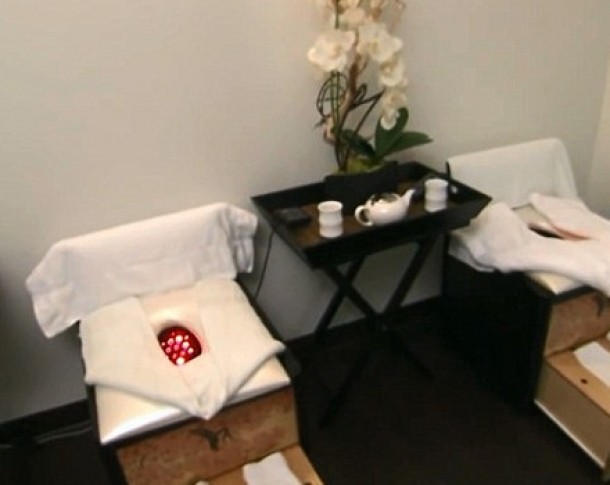 Poreclit “V-steam”, tratamentul de curatare presupune sa te asezi fara lenjerie intima pe un scaun asemanator unui vas de toaleta, sub care este plasat un umidificator ce elibereaza aburi cu infuzie de plante, timp de 30 - 45 de minute.