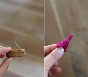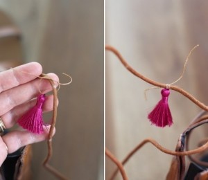 Taie bumbacul cerat în bucăţi de 4-5 cm şi prinde-l de ciucuri ca în imaginile de mai jos.