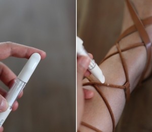 Pune picături de lipici pe curelele sandalelor şi prinde din loc în loc ciucurii, astfel încât să nu se deplaseze în sus sau în jos.