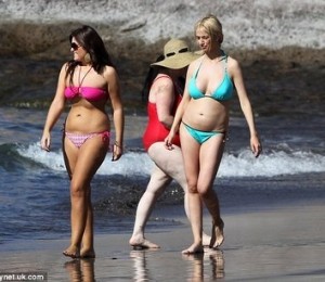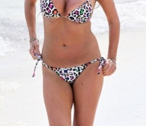 Saptamana trecuta, aceasta a fost surprinsa de paparazzi in timpul vacantei in Tenerife si ne-a oferit cateva imagini cu noua silueta. Imbracata intr-un costum de baie albastru din doua piese, aceasta pare sa aiba un surprlus de kilograme in special in zona abdomenului.