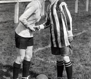 Ultima fotografie din galeria noastra este un pic mai neobisnuita pentru acele vremuri, intrucat infatiseaza sarutul dintre doua femei. Cele doua se saruta inaintea unei partide de fotbal - un meci disputat intre echipele Frantei si Angliei (rezultat 2-0). Capitanul Angliei este cea care poarta tricoul in dungi.