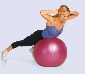 2. Ridică-ţi uşurel partea superioară a corpului, astfel încât pieptul să fie cu câţiva zeci de centimetri mai sus de minge. Menţine poziţia timp de 3 secunde. Revino la poziţia de start şi repetă mişcarea. Nu ridica spatele mai sus decât îţi este ţie confortabil.