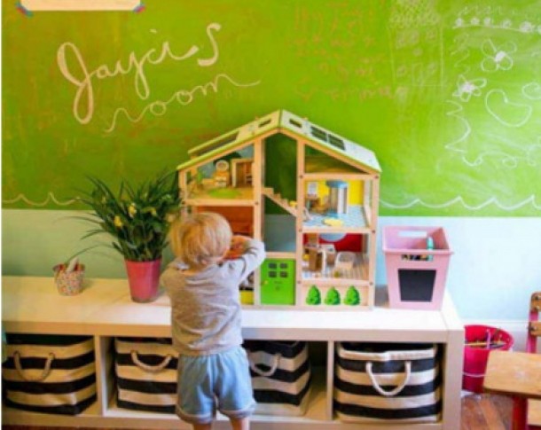 Decoreaza camera copilului cu o tabla de desenat. Da, o tabla exact ca cea de la scoala. Poti sa optezi pentru o tabla neagra sau una de culoarea peretilor din camera si cu siguranta cel mic se va indragosti de ea.