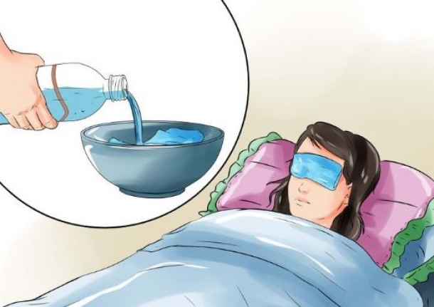 Înmoaie o cârpă curată în apa respectivă şi aplic-o peste pleoapa închisă a ochiului afectat.