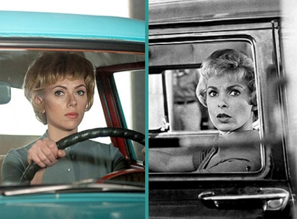 Cu parul scurt, Scarlett Johansson se aseamana izbitor cu Janet Leigh, cea care a jucat rolul feminin din Psycho.