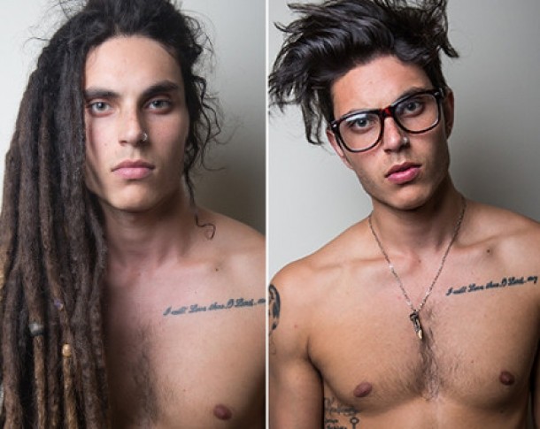Samuel Larsen, in varsta de 21 de ani, a pozat la bustul gol, cu noua tunsoare si o pereche de ochelari, fiind de nerecunoscut.