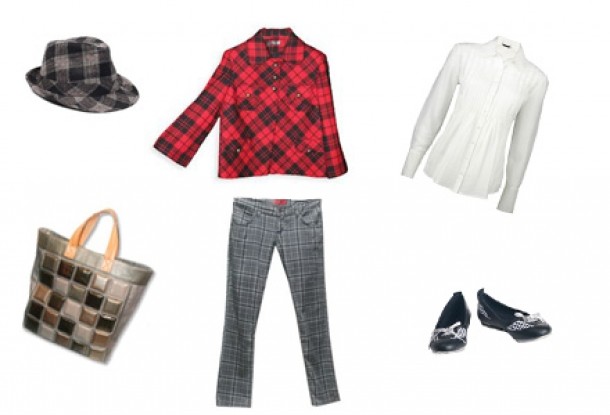 Iar la o tinuta unde jocul de forme trebuie sa predomine, este natural sa alegem ca o completare a tinutei o pereche de pantaloni cu imprimeu in carouri semnati Tina R si balerini de la Cropp Town pentru un efect subtil funky-chic.