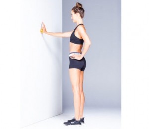 Aseaza-te cu fata la perete, la distanta de o mana. Intinde bratul drept, atingand cu palma peretele. Tine in mana o mingiuta de plastic si plaseaz-o intre palma si perete. Prin miscari mici, roteste mingiuta in directia acelor de ceas. Fa cate 20 de repetitii pentru fiecare mana.