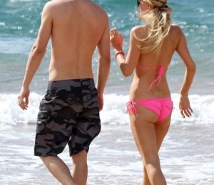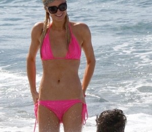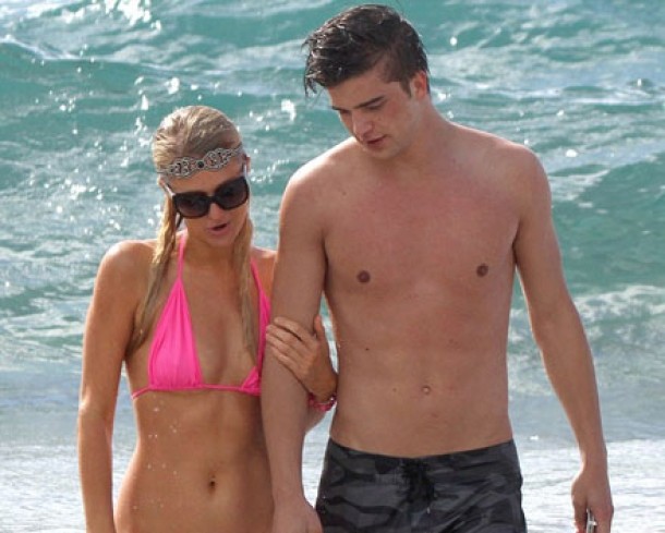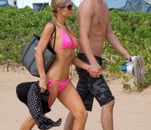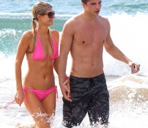 Imbracata intr-un costum de baie din doua piese, Paris parea ca se simte foarte bine in compania tinerelului de doar 21 de ani. La 31 de ani, aceasta nu se lasa mai prejos si nu isi arata deloc varsta. Se mentine intr-o forma fizica de invidiat si celulita sau vergeturile sunt o necunoscuta pentru ea. Are un abdomen plat si picioare perfect tonifiate. In timp ce multe femei ar fi ales un sutien push-up, aceasta a ales nonsalata unul simplu, deloc deranjata de dimensiunea redusa a bustului sau.