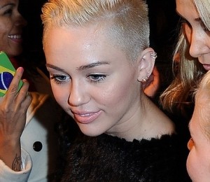 Astfel, cantareata in varsta de 19 ani a aparut in New York cu o coafura de inspiratie androgina. Pana acum, Miley a purtat coafura in doua culori, nuanta naturala a parului fiind vizibila in zona unde parul este tuns foarte scurta, insa de aceasta data, vedeta a aparut complet vopsita intr-o nuanta de blond platinat, ce contrasta cu tinuta in culori inchise adoptata.