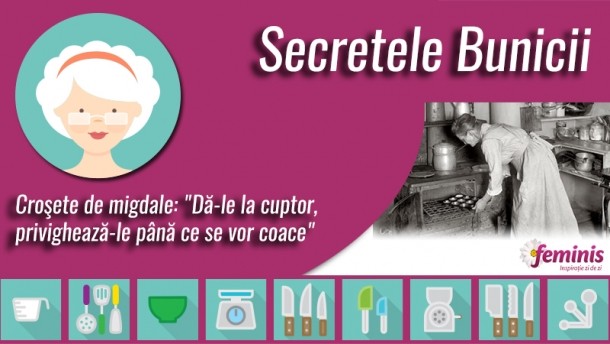 "Opăreşte şi curăţă 210 gr., de migdale dulci cu 42 gr., de migdale amare; amestecă-le şi pisează-le la un loc, adăogând din când în când, la pisat, câte puţin albuş dela două ouă; pune pe o masă 210 gr., făină picluită bună, fă în mijlocul ei un loc, pune înăuntru migdale, 72 gr., zahăr pisat cu vanilie, trei ouă întregi, şease gălbenuşuri, puţină sare, apă de flori de portocale, şi moaie-le toate la un loc, amestecându-le ca un aluat; după aceea, bate-l cu sucitorul, pentru ca să-l moi; pe urmă întinde-l ca de un deget şi jumătate de gros, taie-l tot fâşii, taie dintr'însele alte bucăţele cât alunele, făcându-le în forma maslinelor; apoi unge pe deasupra nişte tăviţe subţiri cu unt, aşează deasupra croşetele de două degete departe una de alta, unge-le peste tot cu gălbenuş de ou, dă-le la cuptor, privighează-le până ce se vor coace, şi când se vor da la masă, să se presare, după voie, cu zahăr de vanilie."